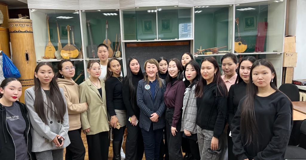 20 марта студенты кафедры народной художественной культуры Арктического государственного института культуры и искусств под руководством доцента кафедры Ольги Ковровой в целях профориентации встретились со студентами фольклорного отделения Якутского музыкального колледжа имени Марка Жиркова.