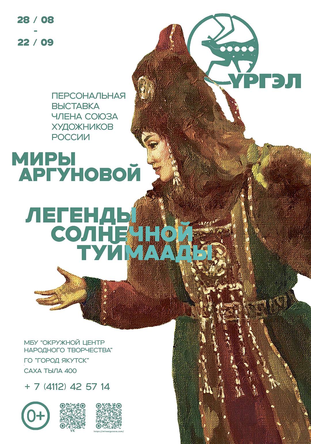 Выпускник-наставник АГИКИ, член Союза художников России, отличник культуры Республики Саха (Якутия), лауреат Национальной премии «Страну меняют люди» Мира Аргунова приглашает на выставку серии картин «Легенды солнечной Туймаады», которая состоится в арт-галерее «Ургэл» 28 августа.