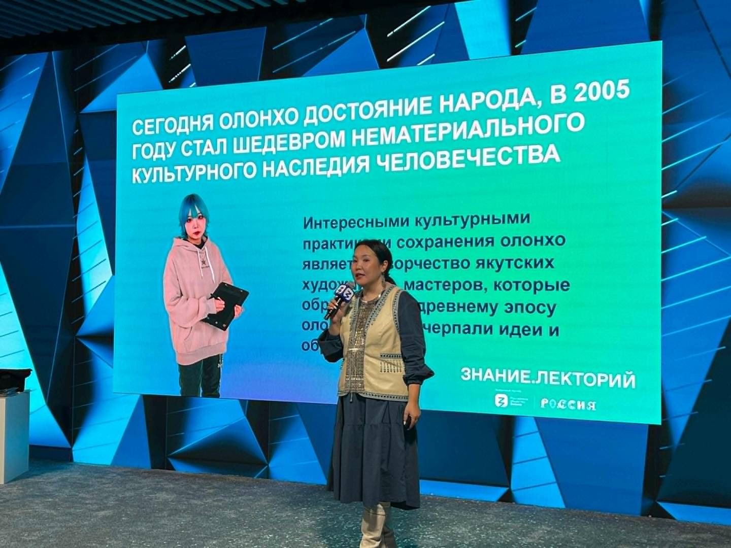 «Я сама исследователь и исполнитель якутского народного эпоса олонхо. Занимаюсь им с малых лет, и уже, можно сказать, жизнь ему посвятила. Современный исполнитель — это хранитель традиции, потому что он обладает своего рода даром импровизации горлового пения. Представьте, что в старину сказитель мог исполнять эпос в течение трех суток. Это сакральный текст. По архивным источникам насчитывается всего 700 сказителей эпоса. Передавая его от поколения к поколению, удалось сохранить эпос до 21 века», - отметила она.